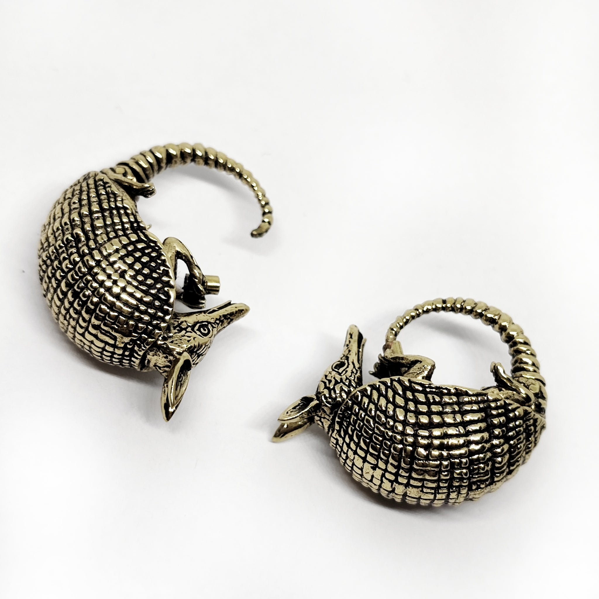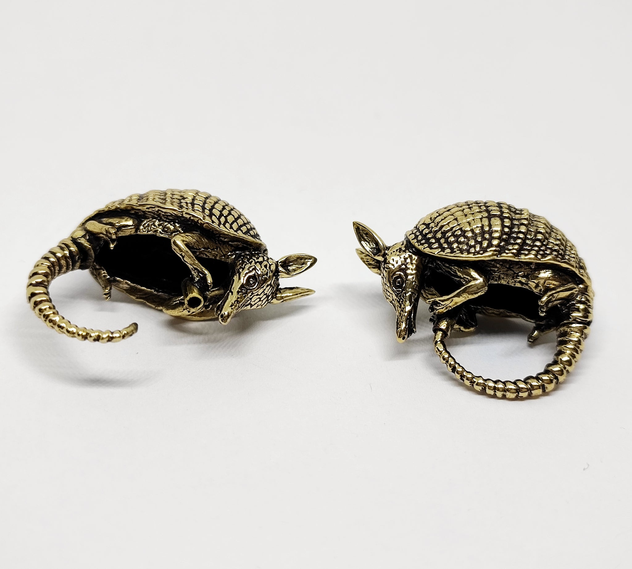 Our little Armadillo Earweights can´t wait to roll themselves up to hang cozily in your ear! For a lighter wearing comfort those earweights are hollowed out and are hinged at the tail, which is modelled in a way to have the Armadillos grab it with their little adorable paws.