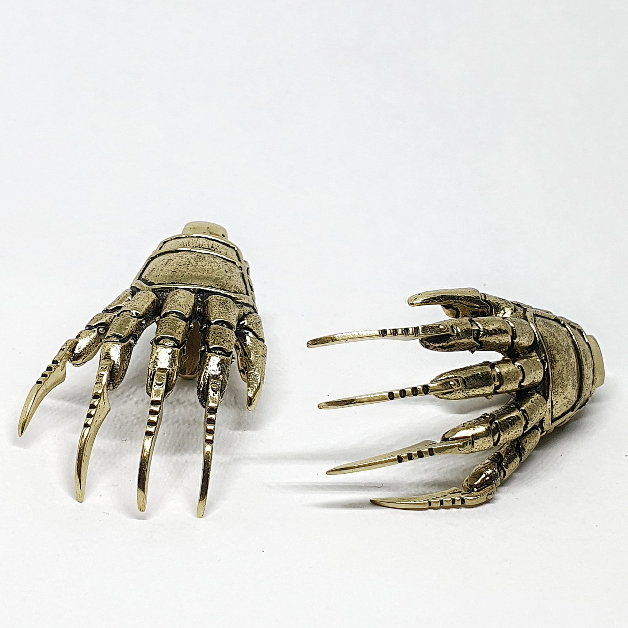 Step into a realm of nostalgia and horror with these brass ear weights inspired by Freddy Krueger's glove, paying tribute to the cinematic memories that shaped your childhood. Growing up captivated by the suspense and thrill of horror movies, we crafted these lightweighted earweights meticulously with great detail as one of our limited runs, blending horror-inspired design with the timeless appeal of brass.