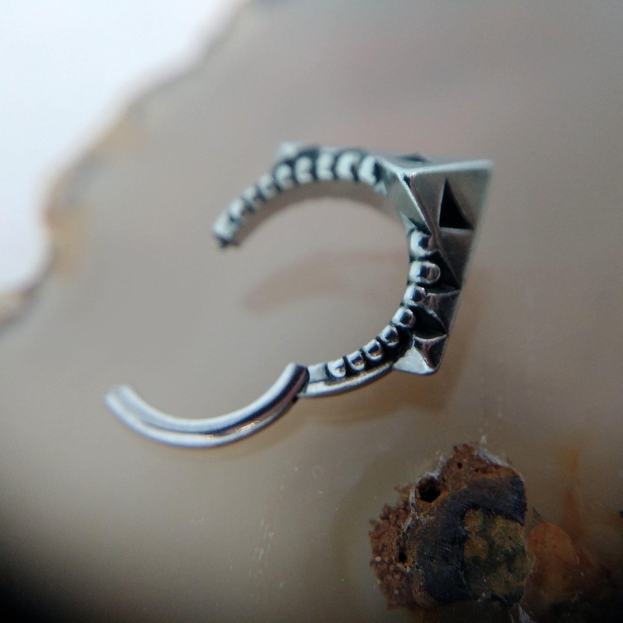 This creative and individual hinged ring was inspired by aztec architecture and fits perfectly into a septumpiercing.