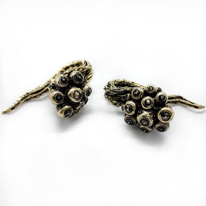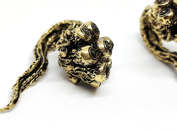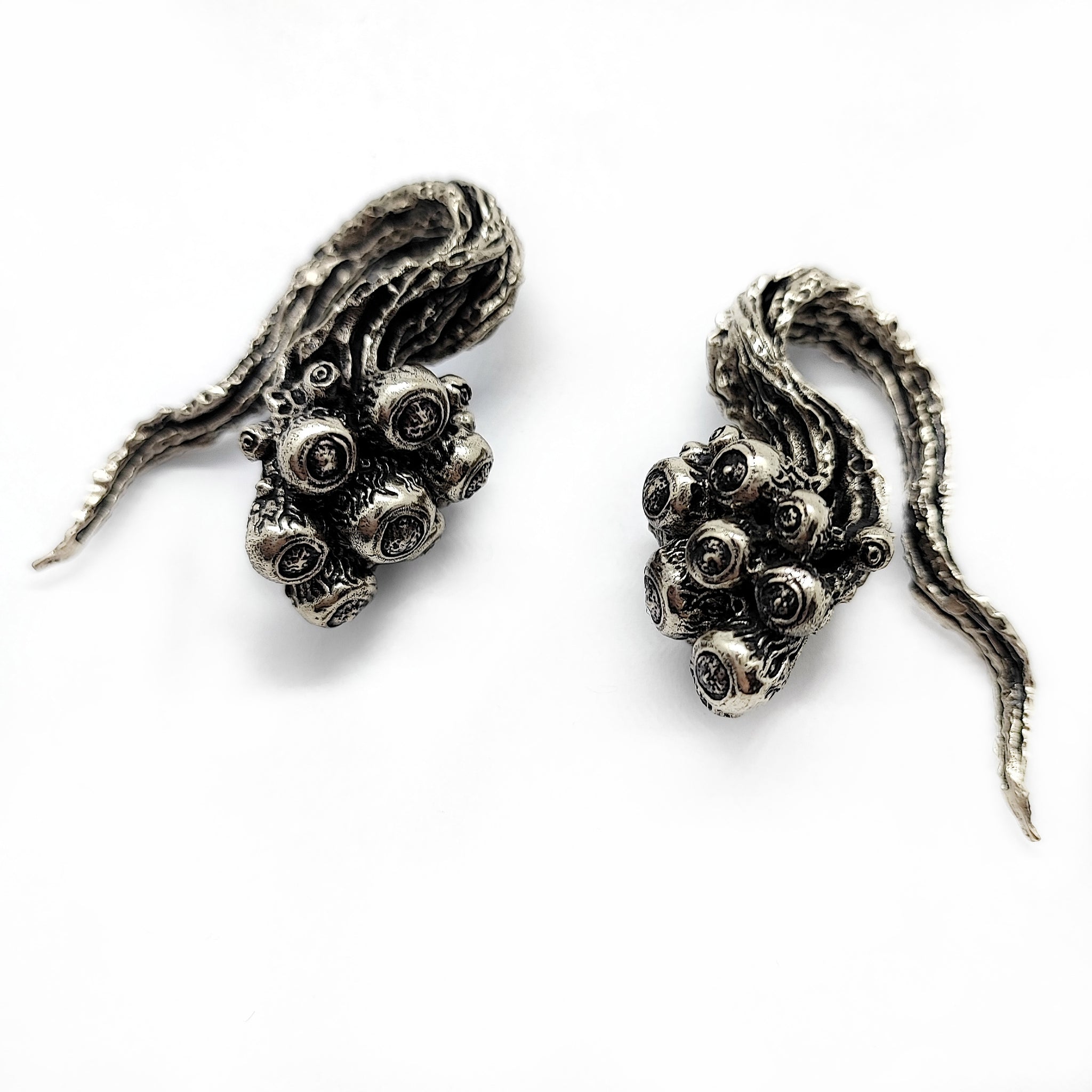 A mass of everywatching eyes connected through raw nerves and cables our Metatron Earweights are inspired by the aesthetic of dark horror, a wearable loveletter to those of us who are drawn to the grotesque and macabre.